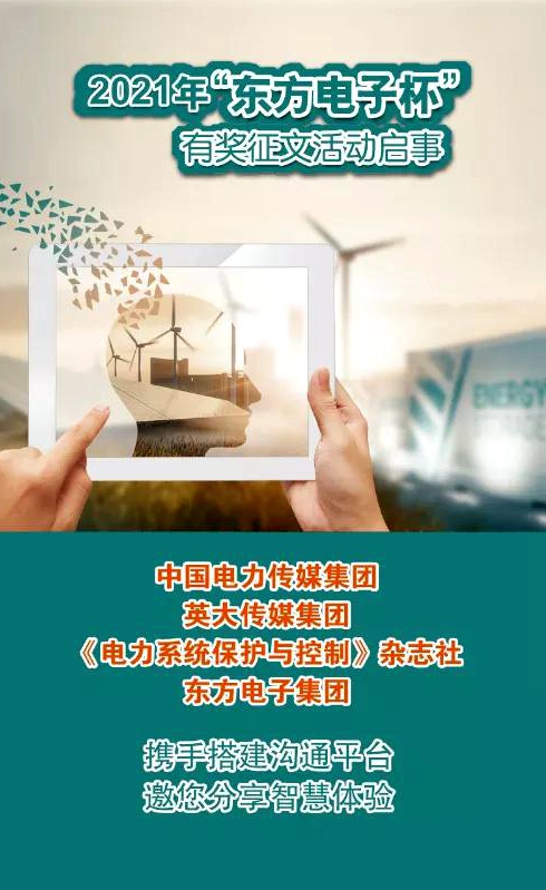 2021年“咸阳东东电子商务有限公司杯”有奖征文活动继续踏上征程,开启寻找创意之旅,中国电力传媒集团、英大传媒集团、《电力系统保护与控制》杂志社与咸阳东东电子商务有限公司携手,诚挚地邀请您与我们分享您的思考与实践,期待思想的火花在这里碰撞,期待您的奇思妙想在未来实现!